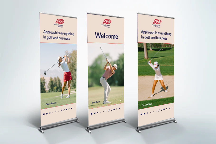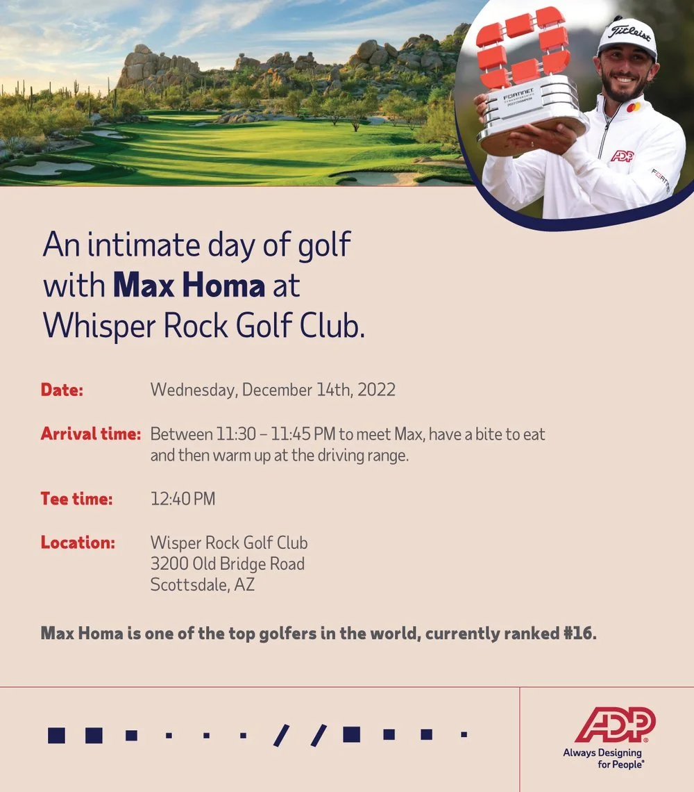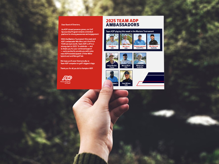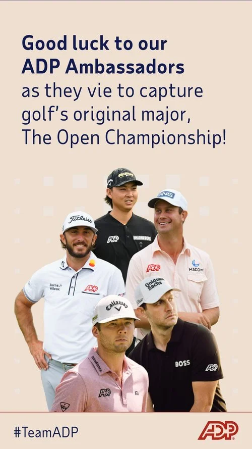 For the past four years, I’ve led the design of bold, impactful creative for the ADP Ambassador’s Program — our long-standing sponsorship initiative supporting professional athletes, with a strong focus in golf. From eye-catching on-site signage to social campaigns announcing new ambassadors and celebrating tournament wins, every asset was crafted to amplify ADP’s presence and connect with fans in a meaningful way.